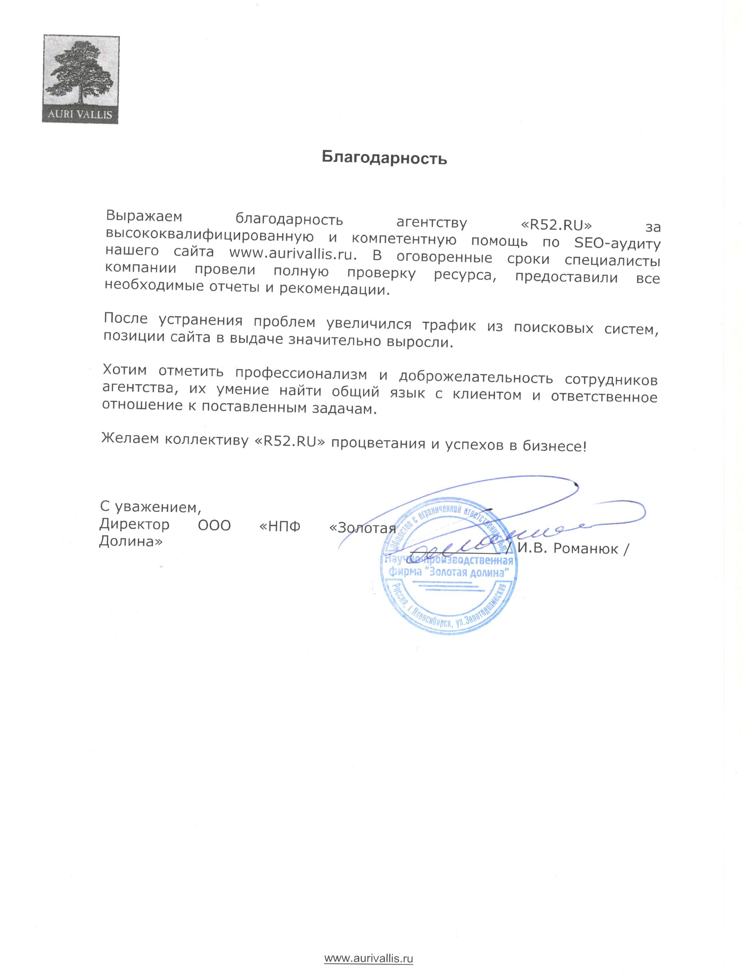 Мы очень довольны сотрудничеством с «Р52.РУ» и хотим рекомендовать их как профессиональную, надежную и ответственную компанию.