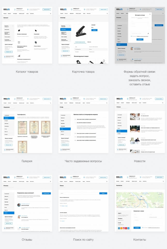 • Формы обратной связи: задать вопрос, заказать звонок, оставить отзыв;
